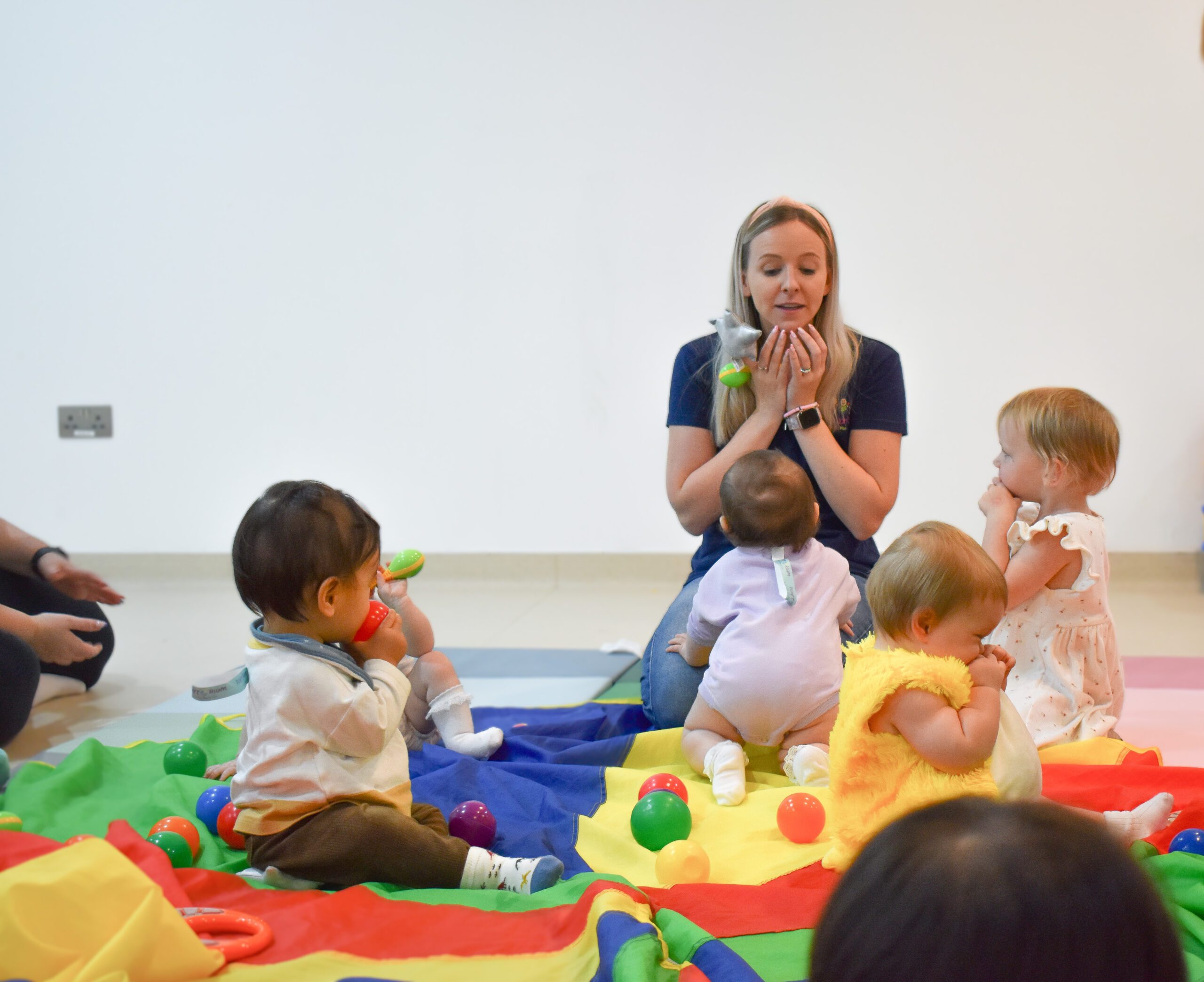 During our classes students will get to use & interact with a variety of high quality instruments whilst singing, dancing and moving to the carefully selected songs. In addition to the instruments, each class includes parachute play, much loved bubble time, and other age appropriate props & puppets. All of our fully trained instructors are native English speakers and full of energy ready to lead the fun filled classes with an abundance of enthusiasm.